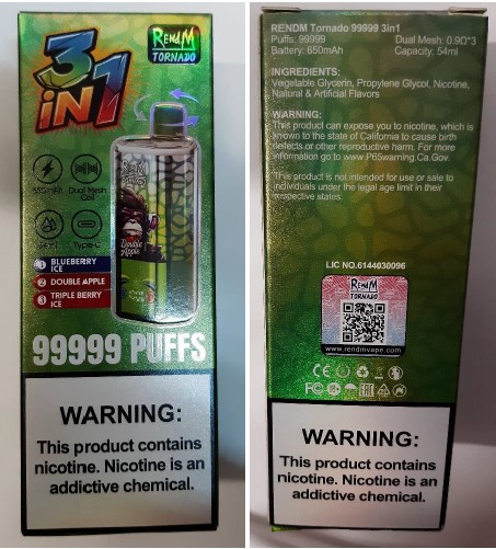 20.02.2026 Jednorázová elektronická cigareta se 3 náplněmi RENdM Tornado 99999 3in1